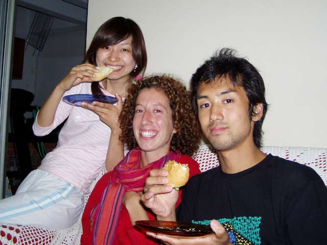 Übereinstimmend müssen wir feststellen, dass brasilianische Jungs mit schweren silbernen Ketten und krassen Doofenkappen über den Reifegrad eines 13-Jährigen nicht hinauskommen, denn für sie ist es das tollste, den Mädels durch Streichhölzer flitschen (festhalten, und über die Zündfläche an der Schachtel wegschleudern) zu imponieren. Steve und Christian können bei mir übernachten, und so fahren wir zurück zu mir, unterhalten uns mit Luiz und Michelle, um abends nach Lagoa de Conceição aufzubrechen. Nach einer kleinen Cocktail-Bar, einer Pasteleria und endlosem Umhergelaufe entdecken wir in der Nähe des TILAG endlich mal eine urbrasilianische Disko, mit verträglichen Eintrittpreisen (12 Reais) und verbringen dort den Abend. Nachdem Trampversuche erfolglos bleiben, erkundigen wir uns beim TILAG-Wachmann, wann der erst Bus zurück nach Floripa fährt: In einer halben Stunde, um viertel nach 4 morgens. Na gut, da lohnt kein Taxi, die halbe Stunde bekommen wir auch noch mit einem X-Salada (Burger) in einer Kneipe totgeschlagen und dann ab in den Bus. Der ist wie auf der Hinfahrt schon voll mit Kuttenträgern, da in einer anderen Disko in Lagoa heute eine rabenschwarze Metal-Party war.