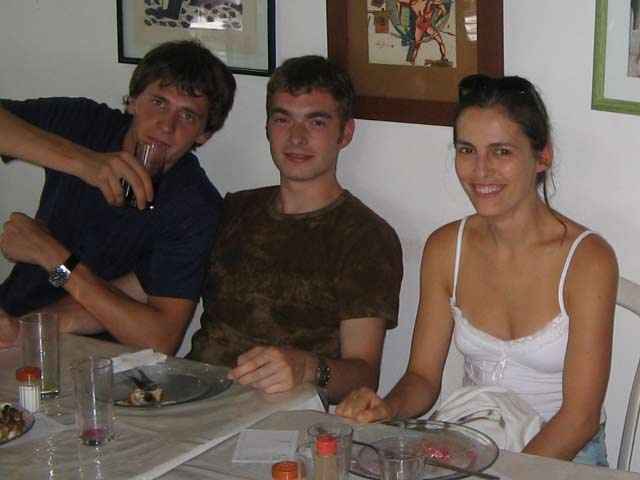 Später wollten wir uns mit Juliane in einer Disco namens Terraço Brasil in Cacupé treffen. Als wir dort mit dem Bus angekommen sind, weil es weit abgelegen lag, war das 1. ein Restaurant, und 2. wahrscheinlich noch mehr Schicki-Micki als andere, als wir bisher gesehen hatte. Wenngleich man von dort eine sehr schöne Aussicht auf Florianópolis hat, siehe deren Homepage. Als der Bus, der noch ein Dorf weiterfuhr, wieder umkehrt ist und erneut an der Haltestelle der Terraço Brasil ankam, saßen wir wieder drin und haben uns auf den Rückweg gemacht. Es war der letzte Bus, also war es zumindest kein schmerzhafter finanzieller Verlust, da wir für unseren 2-Minuten-Aufenthalt dort keinen Eintritt bezahlt haben und den letzten Bus noch erwischt haben. Juliane, die uns dort in die Pampa gescheucht hat, war übrigens nicht da. So sind wir dann wieder durch Trindade gezogen und in der Republica-Bar gelandet, eine Kneipe, die studentisch sein soll. Erst war viel Hippi-Hoppi, danach spielte eine Band, und Juliane kam auch noch vorbei. Sie hatte eine Freundin aus Deutschland, Ines, mit dabei und auch Milene, Tatiana und Paolo. Die drei kannten uns, aber wer sind die? Auflösung: Sie waren auch an unserem ersten Abend, dem Churrasco bei Veras Gasteltern dabei, und wir haben uns dort natürlich nicht an alle Leute erinnern können. Milene hat mal ein Semester in Mainz studiert und kannte daher Juliane. Tatiana ist Milenes Schwester, und Paolo ihr Freund.